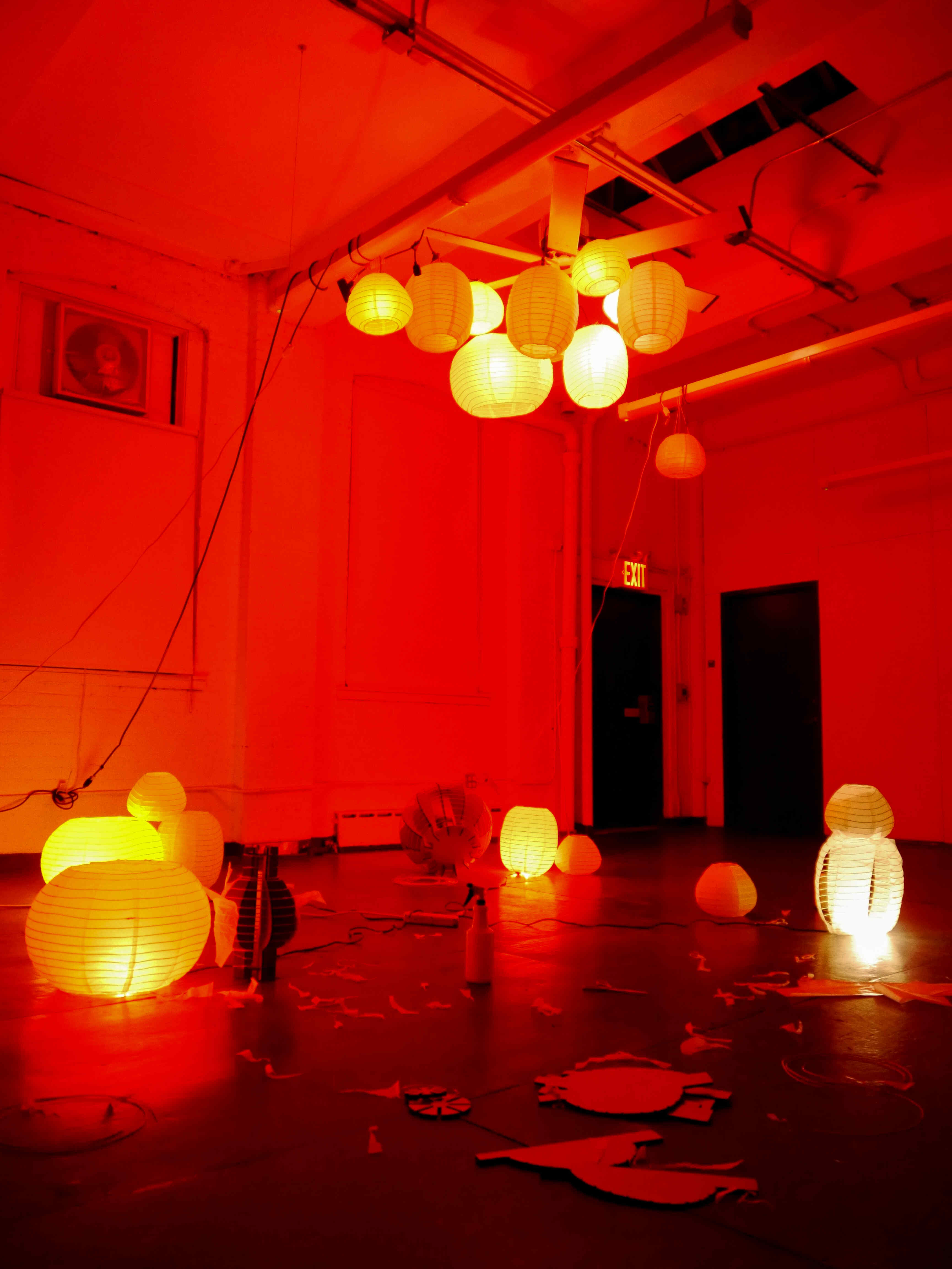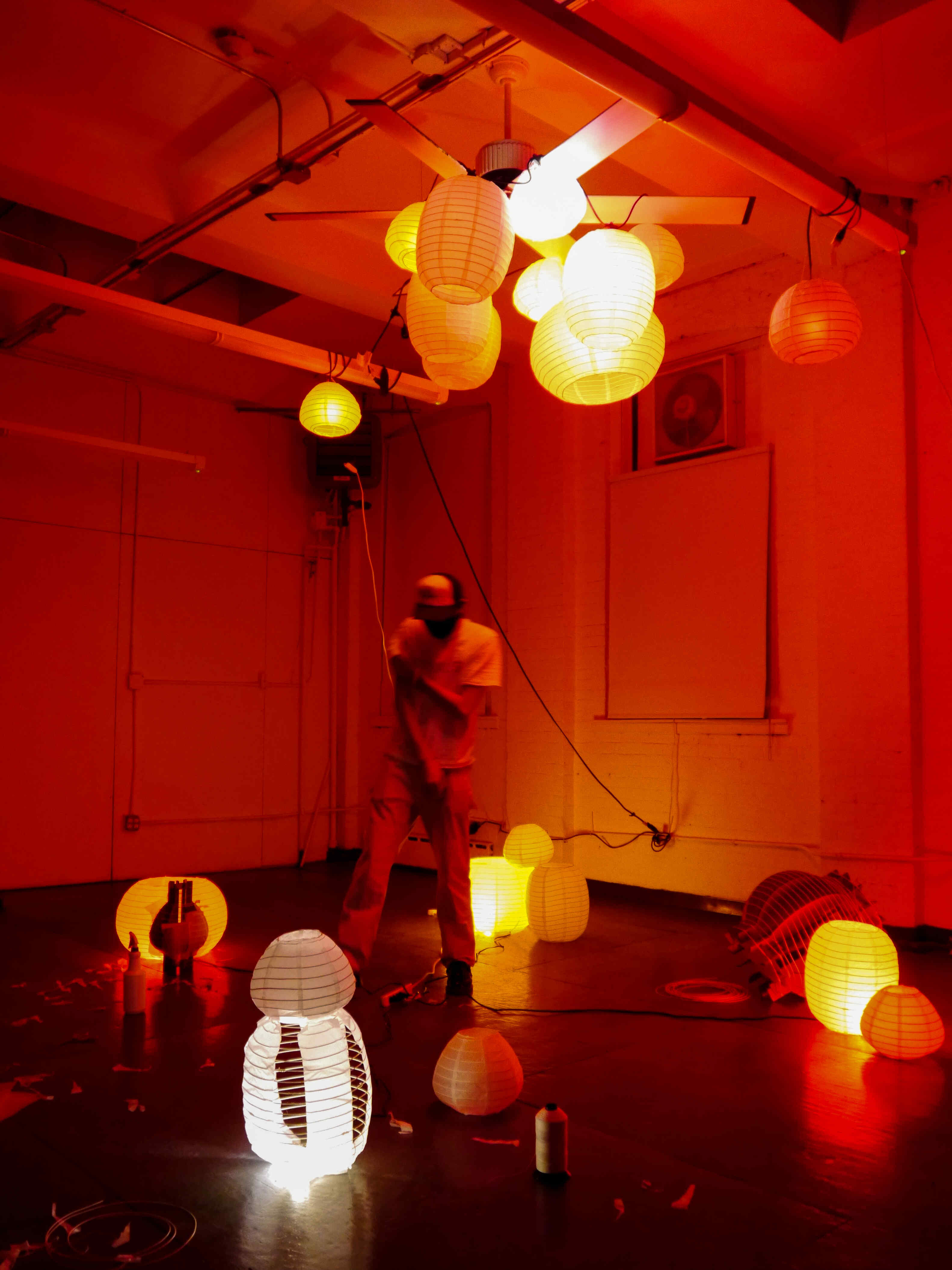 A celebration: Taking shape in the form of lanterns. Something usually seen during Lunar New Year festivities which was missed this year. Traditionally, the celebration marks the first new moon on the lunar calendar, but to me the lanterns celebrate the start of a new time for my community and I. A great shift in energy. A tribute: The recent attacks on Asian Americans made me think about my grandparents and their lives. I think about them a lot and how they, along with my parents, have had to overcome and sacrifice so much, to which I owe my opportunities and privileges. I am forever grateful for all that my family and friends have given me. So grateful that I wanted to give back and pass the recent shift in energy to my people. Dedicated to my fellow artists, my fellow Asian Americans, my fellow Chinese and Vietnamese Americans, to my friends and to my family. 4 my people. The light seen features 21 handmade lanterns. The time spent and the physical process of constructing the lanterns was in a way meditative for me. The rhythm and flow of brushing glue on the reed, spraying the paper with water allowing it to stretch, smoothing the paper into shape around the reeds and doing so with my hands was an experience. The thought was to give a sign to those around me and my community who haven't quite found their stride during this time. A sign for those who needed it to trust in themselves and to keep going. To never stop.