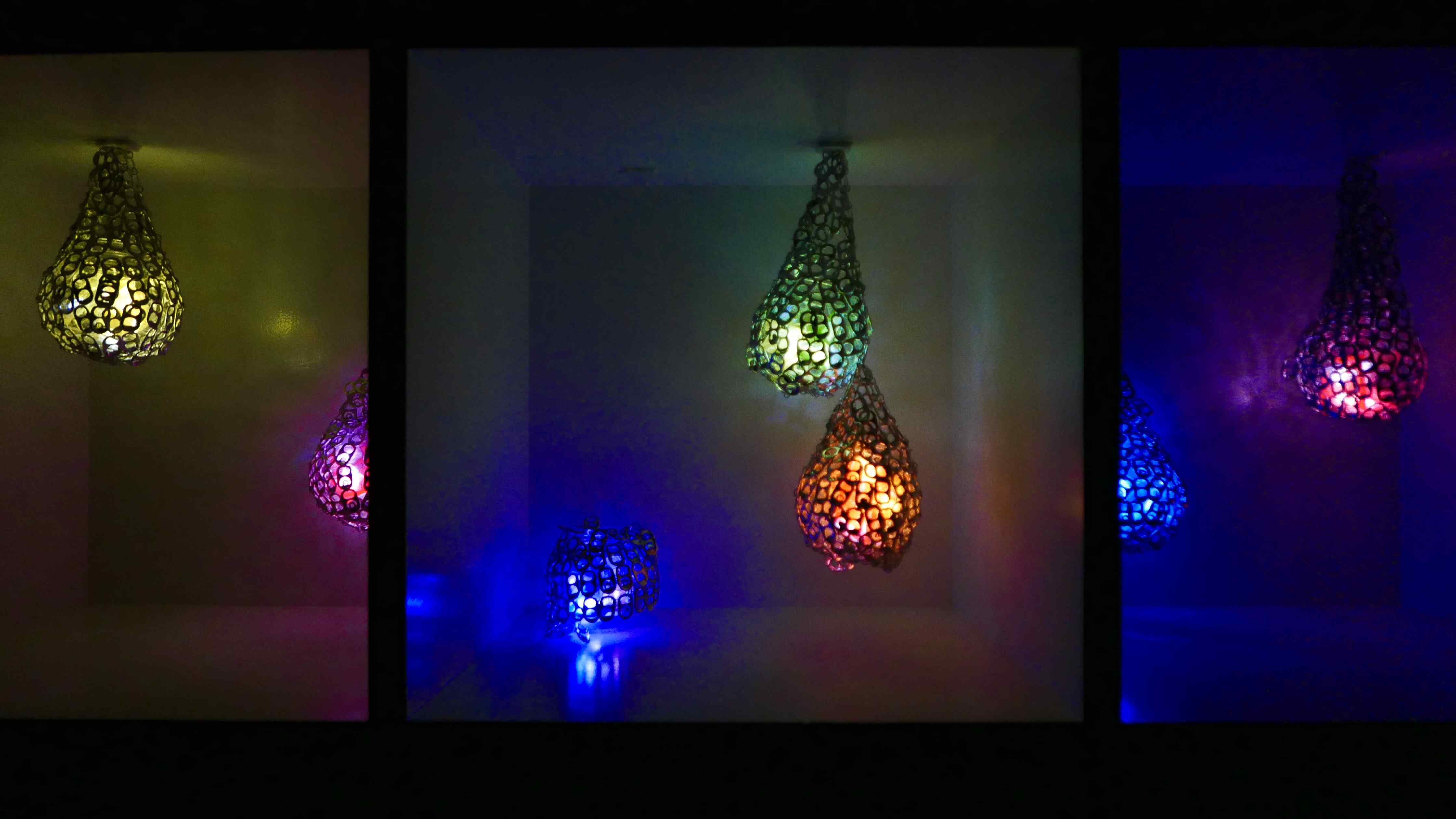 Dirty Disco is a collection of found and up-cycled “waste.” Aluminum and plastic establish their newfound relationship as white lights expose their journey and manipulate their history.
